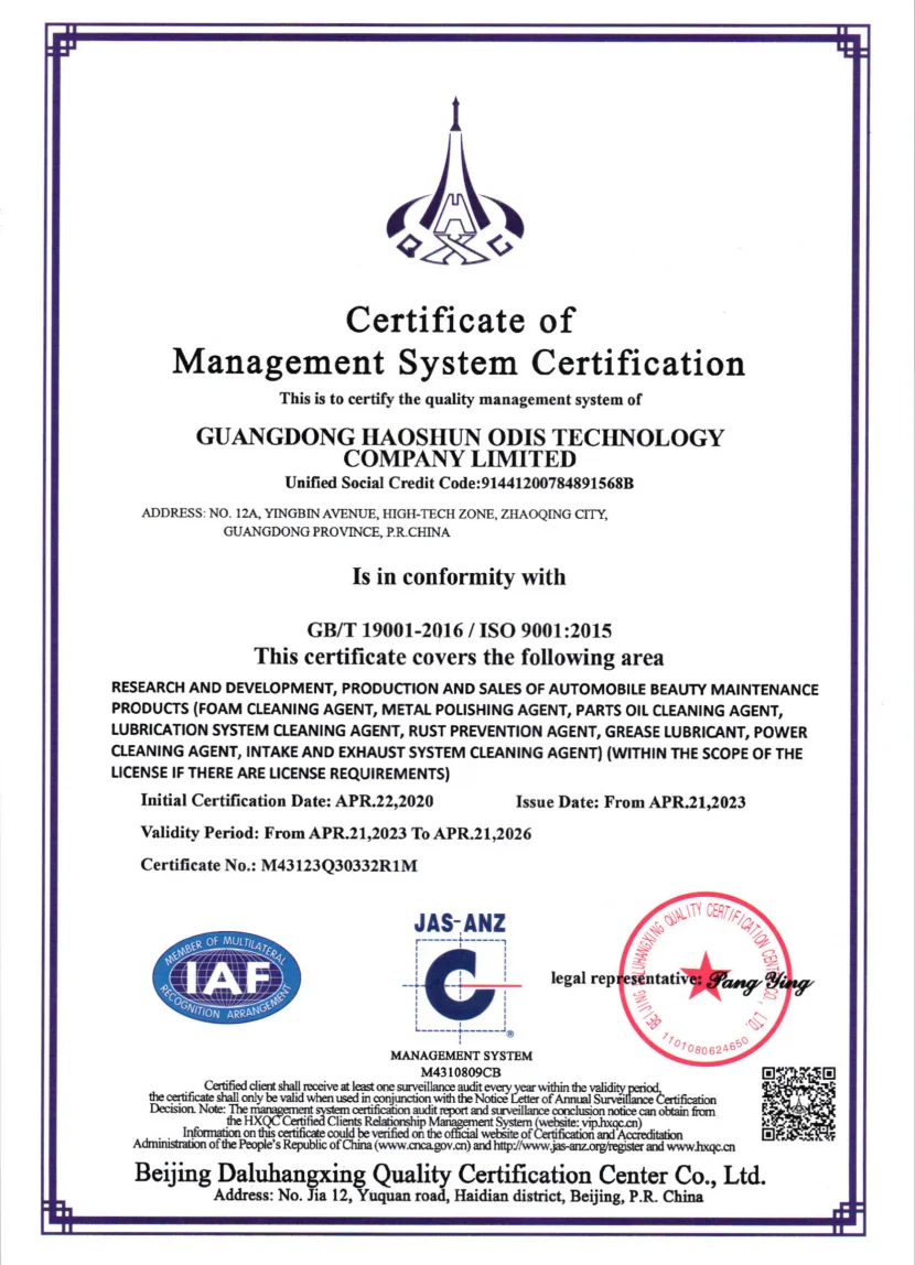 Guangdong Haoshun ODIS Technology Company Limited, founded in 2006,It is a national high-tech enterprise focusing on the research, development, production and sales of deep car care, car beauty and polymer materials such as TPU car coat, with its headquarters in Zhaoqing National High-tech Industy Development Zone, Guangdong Province. The total area of the enterprise is 102,373.70 square meters, with a construction area of 68,481.2 square meters. It is equipped with a high-tech research and development center, an automatic batching center, an intelligent storage center for raw materials and finished products, 3 production bases, and 14 independent production workshops.